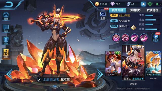 2.花木兰:五五开黑节之水晶猎龙者,买这款皮肤不是为了别的,就是冲着那句”五五开黑节“买的,遥想当年,小编还是高中的时候,和同学们天天翘课去网吧,然后英雄联盟,网吧五连坐,从来没赢过!说的就是我们,小编那时候,是在LOL刚刚上线网吧不到一个星期的时间就入坑了,然后一坑就是七八年的时间了,LOL已经是全英雄的我,如今也很少玩咯。