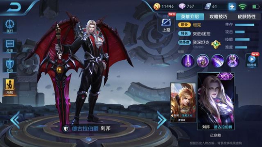 4.刘邦:德古拉伯爵,这是小编最常玩的一个辅助性英雄,各种打野上单之类的,总之如果团队没肉了,我就顶上去,反正是个肉,各种都是能打能抗的,开个大招放个盾冲进去就行了。