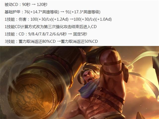 苏烈大削:1技能大幅削弱,伤害减少CD增长,自身护甲值增高,被动复活CD变长。