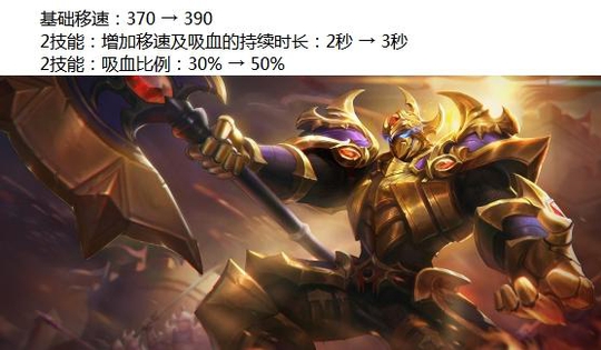 典韦增强:整体移速提高,吸血效果增强,依旧只能站撸,打团还是不行。