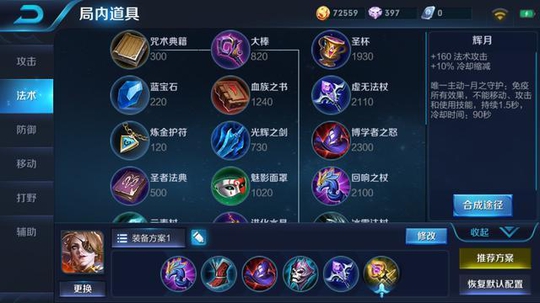 出装①:回响法杖+冷静之靴+博学者之怒+痛苦面具+虚无法杖+辉月(贤者的庇护)