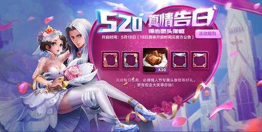 然后在5月15日到5月22日,有很多活动可以得到爱心巧克力,比如登录游戏,对战掉落,分享图片等等,另外添加皮肤到心愿单也可以得到两个。有52个就可以换取这次的周小瑜和萌小乔的头像框,感觉又是情侣的最爱啊!