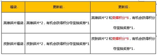 商城也有大优化,这个福袋在更新后可以多得到一些荣耀积分。相比以前还是要好一些的,相当于购买的十个就能免费积分夺宝一次。