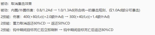 2技能:蓝耗:60(+5/Lv) → 50(+5/Lv)