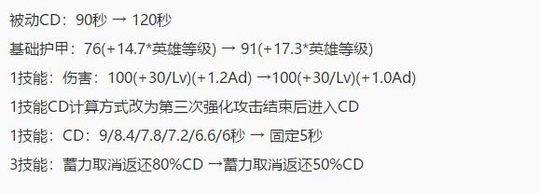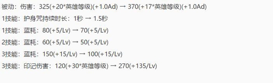 3技能:蓝耗:135(+15/Lv) → 100(+10/Lv)
