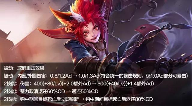 解析:玄策这次取消被动重击、削弱2技能伤害及2技能CD,以前2技能钩中后的敌人死亡后,2技能即时刷新,更新后2技能钩中后的敌人死后返还80%CD。