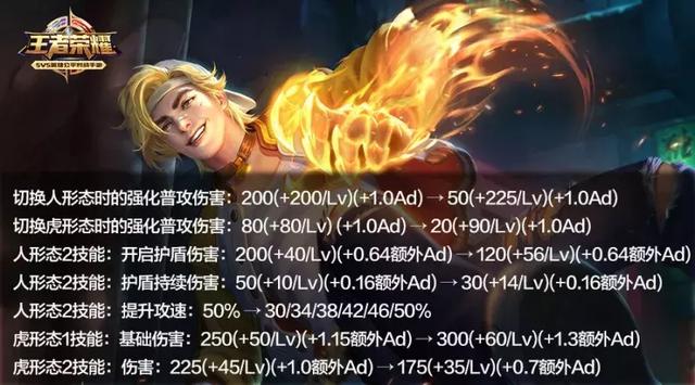 解析:老虎作为一个双形态英雄,主要以消耗跟收割为主,这次削弱后,老虎在虎形态时会非常吃力,所以大家还是前期以人形态多消耗对手后再进行收割。