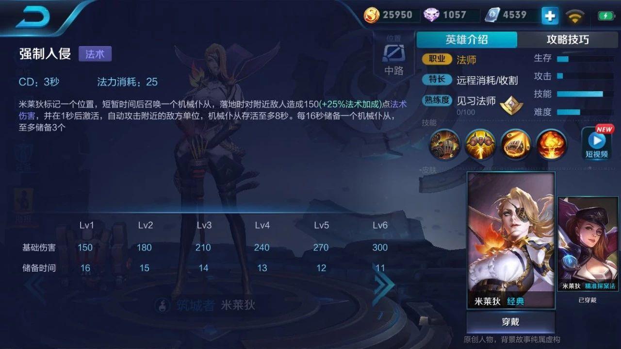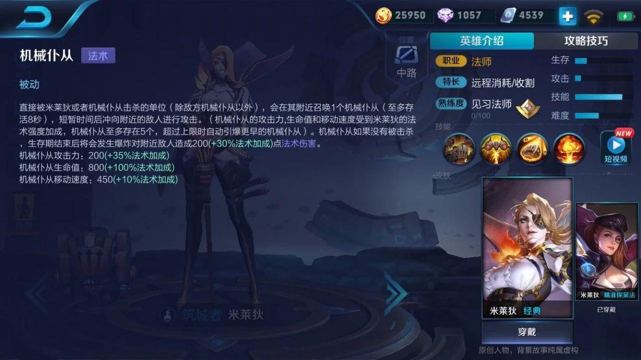 作为远程消耗型法师,米莱狄的输出形式却是法术和物理兼顾的,可以通过自身技能和击杀召唤出机器仆从进行攻击——她也是王者峡谷里唯一的“召唤系”英雄。