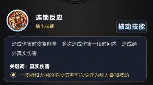 再看一下技能的技巧,首先是被动,这个被动可以让他造成真实伤害,而官方这里给的技巧是一技能和大招的多段伤害可以快速给敌人叠加被动,在被动叠加到一定程度之后真实伤害就出来了。
