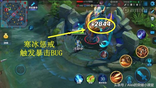 大家可以看到,冒出了一个白色暴击数字:2844,这就是马可波罗寒冰惩戒的暴击BUG。