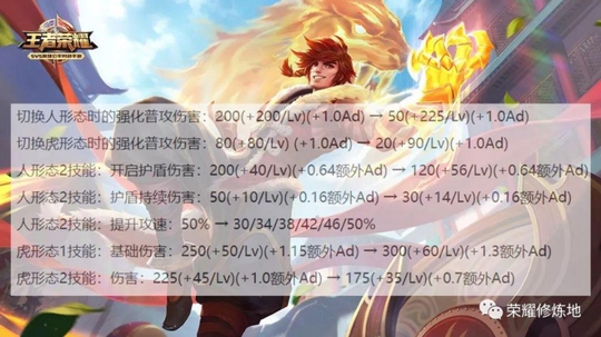首先是裴擒虎,裴擒虎因为是双形态,在2级的时候就有四个技能,前期入侵能力极强,所以这次更新除了虎形态1技能伤害提升之外,其他方面全部削弱。