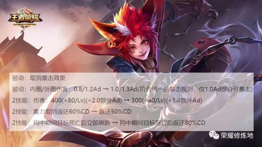 第二位是百里玄策,主要的调整是取消被动的重击效果,2技能伤害有所降低,目标在钩中期间死亡,2技能可立即刷新改为返还80%CD,避免2技能频繁使用导致的移动越界问题。