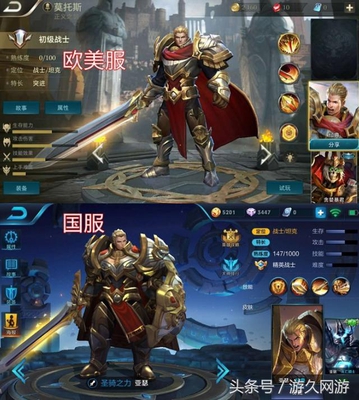 上图为亚瑟形象对比,明显感觉欧美男性英雄更加强调力量。我们国服大亚瑟就活脱脱是个胖子了,估计设计师看到这都很无语。真的是没对比没伤害,有对比真吓人。《Arena of Valor》只保留了孙悟空、赵云、吕布、貂蝉等几名国服版《王者荣耀》中的著名人气中国角色,其他角色都是依据西方文化作为素材进行设计,总的来说此次游戏出口还是一件非常棒的事情。你们怎么看呢?欢迎下方看哦!