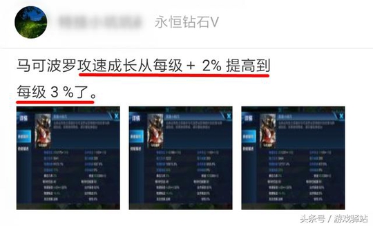 值得一提的是官方并未提及新版马可在攻速成长值方面的改动,即马可每级攻速加成由2%调整为3%,达到满级后马可拥有42%攻速,相比旧版多了14%的攻速加成!