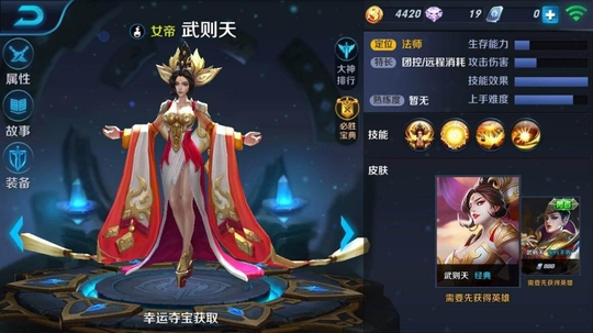 女皇武则天可是一位稀有英雄,很少有玩家拥有,这完全是靠钱和人品才能得到了,缺一不可啊,武则天没有位移技能,但她的一技能带击飞效果,二技能可以击退身边的敌人,两个技能都能有效弥补自身的不足。