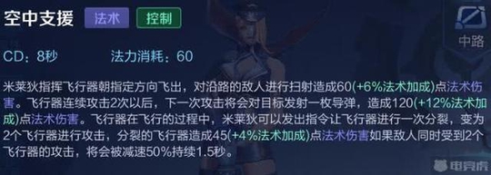 一技能的飞行器在推线上非常好用。当兵线到的时候,放出一技能对整条线的小兵都能造成伤害,可以更加快速的进行推线。