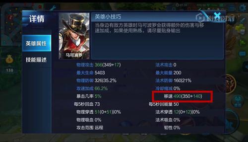 二技能被动:马可波罗身边500范围内存在敌方英雄时,会提升一定比例的移动速度和伤害。