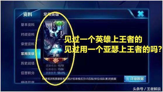其实王者解说觉得这样的说法真的是一点问题都没有的。毕竟英雄池的深浅真的决定了大部分玩家的段位情况。但是,凡是都有例外。我们也看到过很多一个英雄上王者的玩家。但是,通常来说,能用一个英雄上王者的都是大神级玩家,而且用的英雄基本上也都是比较强势的英雄。但是,今天王者解说就看到一位只用一个老亚瑟就上了五个赛季王者的玩家。