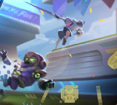 咱们镜头再往清凉李白的左下方看,有人说这是《王者荣耀》新上线法师英雄米莱狄召唤出来的机器人。