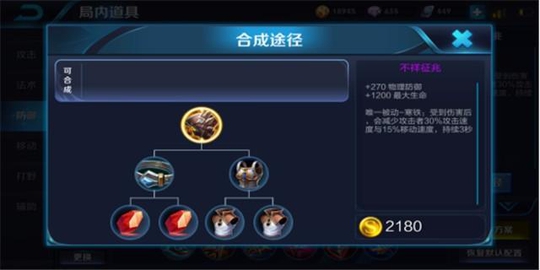 不祥征兆可以说是坦克的必出装备,首先来看看不祥征兆的面板数据:+270物理防御,+1200最大生命。这个增幅很全面,对物理防御和血量都能兼顾。但是坦克玩家们更加青睐的是不祥征兆的唯一被动-寒铁:受到伤害后,会减少攻击者30%攻击速度与15%移动速度,持续3秒。那么减少30%的攻击速度是什么概念呢?小编拿闪电匕首举个例子,闪电匕首的属性为:+30%攻击速度,+20%暴击率,+%8移速。看到这里小编相信各位已经明白不祥征兆的威力所在了,尤其是面对像狄仁杰和后羿这种依赖高攻速和高移速的射手英雄时,合成一个不祥征兆就相当于变相削弱敌方射手的输出和生存能力,一举两得。