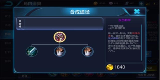 反伤刺甲相信玩家们都很熟悉了,作为王者荣耀里拥有最高物理防御增幅的一件装备,小编把它排在第二相信应该不会有争议。其面板数据为:+40物理攻击,+420物理防御。不仅如此,反伤刺甲的唯一被动-荆棘甚至能帮助你击杀敌方英雄:受到物理伤害时,会将伤害量的20%以法术伤害的形式回敬给对方。自身每20点物理防御属性提升1%该伤害(最多+100%)。游戏后期,一个成型的射手普通攻击的伤害往往能达到2000~3000,按照反伤刺甲的基本属性来算也能反弹400~600的法术伤害。虽然实战中有各种因素会影响着最终伤害值,但是光按照基础属性来算反弹的伤害也不算低,所以这件装备对抗射手可谓是物尽其用。