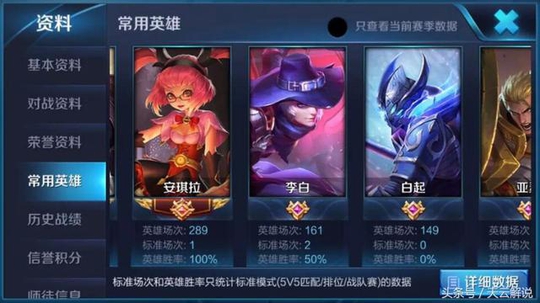 看来这个玩家只会使用特定的几个英雄,像这个安琪拉应该就用的出神入化了,289场一局都没输过,这在娱乐模式中也是很厉害了!不过像白起这些胜率0%的是真的没见到过!对此,大家有何看法?欢迎讨论!