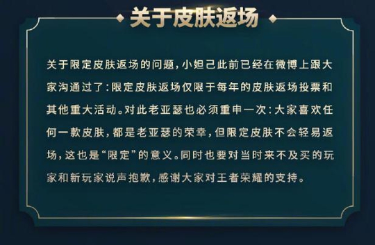 王者荣耀:官方解答热门问题,皮肤返场无望,貂蝉皮肤正在优化