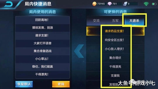 其中上次体验服爆料出的王者荣耀大逃杀快捷消息,大家也之前看过了,上面有一些吃鸡专用语,玩过《刺激战场》的小伙伴都应该知道了吧,里面的快捷用语跟着图上的差不多。