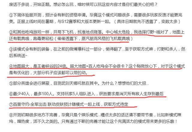 而且这种模式出来之后为了避嫌,并不叫吃鸡,而是叫边境突围,要是叫什么绝地求生,峡谷求生那就太俗套了,就有了抄袭的嫌疑。对此不少玩家也表示,自己已经等了很久了,王者荣耀再好玩,一局也终究只是10个人一起玩,没有激情容易退游。吃鸡模式就不一样了,据说王者的吃鸡模式最少容纳50人,最多可以同时容纳一百人,这么多人打架捡装备的情景想想就刺激。