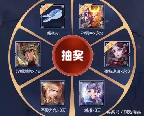 另外通过登录游戏和参与一次5V5对战还能拥有两次机会抽取永久孙悟空和露娜皮肤哥特玫瑰,当然奖池还包含了鲲抱枕、刘备汉昭烈帝七日卡和刘邦皮肤三日卡!