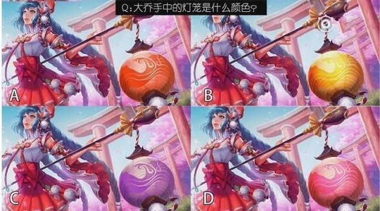 大乔是一个辅助软妹子,你们知道她手中灯笼的颜色到底是哪一个吗?