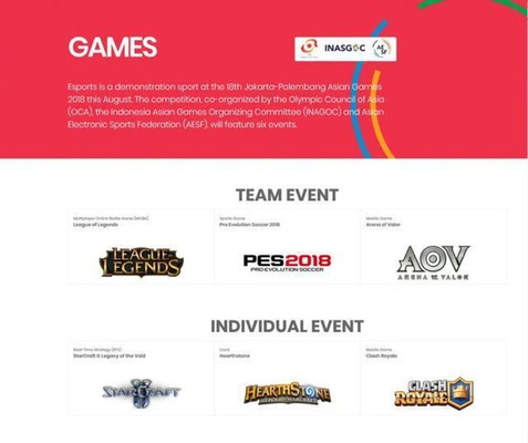 那么,最重要的来了!有哪些游戏入选了此次的亚运会呢?