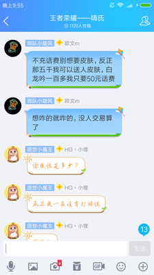 相信大家都见过骗子吧,这种人在QQ群里还是在什么地方都挺常见,无非就是用一些现在看来很***的方法来告诉你怎么赚钱或者占小便宜快,今天在QQ群里偶遇了一个骗子,他说只要我们帮他充五十元话费就可以给我们想要的王者荣耀皮肤一个,不管288还是2880都行