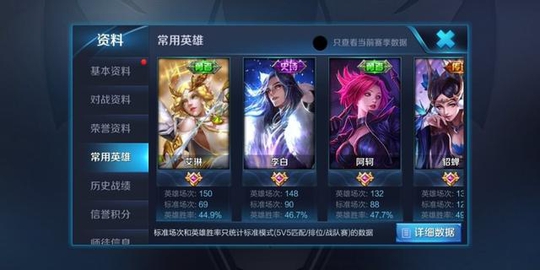 再看完他的常用英雄列表,就一目了然了。玩家玩的最多的英雄居然是绝版英雄艾琳!