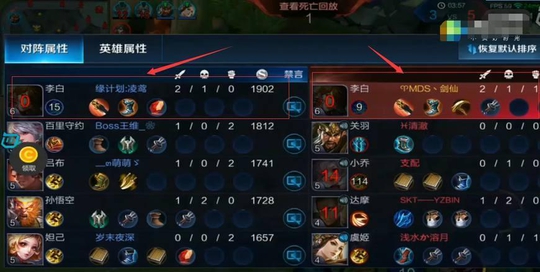 在这一把游戏里面,我们的大西瓜就是玩的李白这个英雄,然后对面也有一个玩李白的玩家。这两个李白,一个是凤求凰一个是千年之狐,估计都是玩到巅峰和极致的游戏玩家。