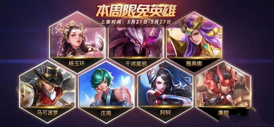 然后是给我们新手玩家说一下,这一周的限免英雄有杨玉环,干将莫邪,雅典娜,马可波罗,庄周,阿珂,廉颇。这些英雄目前都是很强势的英雄,在铂金段位下面可以做到很好的团战的英雄,所以大家可以先去试试,喜欢的就买吧。特别是干将莫邪练好之后我保证你可以上钻石,这个英雄真的很逆天。好了今天文章就到这里,欢迎关注欢迎评论说明自己对大小姐新皮肤看法。