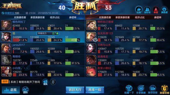 在对英雄造成输出方面,貂蝉是打出了41.8%,已经是占了队伍中的五分之二的输出了,张飞也是表现得不错,这局妹子能打出这样的数据,完全是这个张飞。