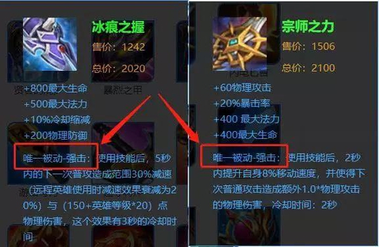比如宗师之力的唯一被动叫“强击”,而冰痕之握以及ap装巫术法杖也的唯一被动也叫“强击”,或是破晓和碎星锤的唯一被动同样叫做穿甲。