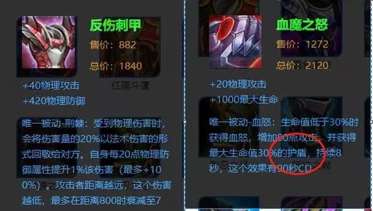 但是在团战中更多时候坦克需要提高自己的生存空间,都会选择这两件都出。这样即避免了被一波爆发带走,又能在消耗完护盾之后就触发反甲效果。