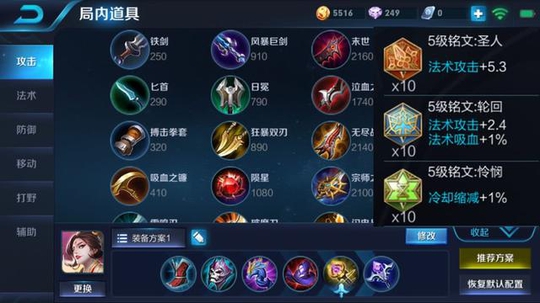作为一个法师,前期叠加法强是必不可少的,因此在出了冷静之靴后,面具,回响之仗以及帽子都是很需要的装备,除非真的是大逆风的情况下,才会将辉月这件保命整备提前出,不然顺序最好是按以上这一套!最后补上虚无法杖,这样法穿更加强力!铭文方面则推荐圣人+轮回+怜悯,配合上面这套出装冷却缩减刚好40%且还有10%法术吸血,续航能力也很不错!