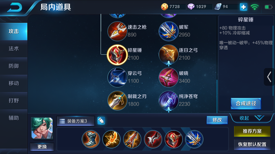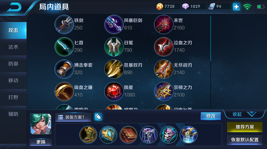 每个路线的出装基本和上面的一样