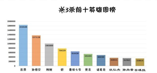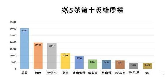 这个数据可是有些惊人了,当然这其中大部分四杀、五杀肯定是产生于中低端局,但不管怎么说也从侧面反映出后羿的强势之处。除了后羿之外,在这个榜单中前三的常客还有两位,那就是虐菜神器阿轲与孙悟空,看来这两个刺客英雄那种无脑程度还是很惊人啊。