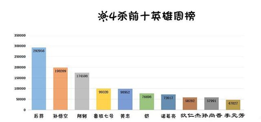 而近日,小游君发现有网友统计了一波上周整个王者荣耀多杀的英雄数据排行榜,其中最引人注目的就是后羿了。这个王者荣耀中唯一能在高端局见到的无位移射手,在上周分别获得183万多次的三杀,近30万的四杀以及3万多次五杀。