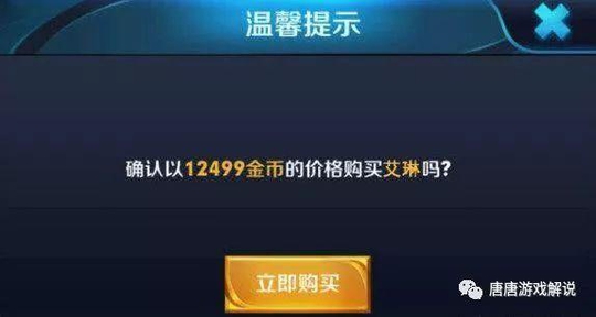 当然还有就是购买艾琳需要的金币数量,标价是12499金币,这个数字看起来是有点奇怪的,因为这不像是天美的风格啊,天美是比较喜欢8的,一般都不会选择数字4。