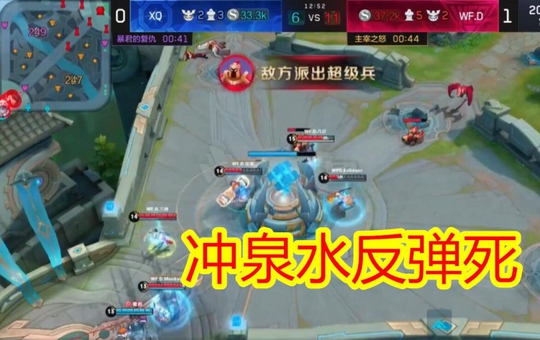 第三局,WF.D使用了鲁班这个英雄,但是前期却被XQ入侵,损失比较大。之后XQ利用这个优势连续打小规模团战获胜,经济和人头领先不少,之后再打下主宰,配合主宰推掉了WF.D的上路和中路。然后带着三路超级兵,强上高地,点破水晶,1比2扳回1局。没有位移的鲁班面对这种场面真的有点无力。