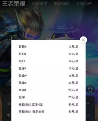 在APP内可以看到包括有王者荣耀以及绝地求生的两款吃鸡游戏,还有其他的手游都可以找到代练。以王者荣耀荣耀为例,明码标价了每个小段一颗星的价格,王者段位每颗星直接标价五十,可以说代练的确是非常赚钱了。