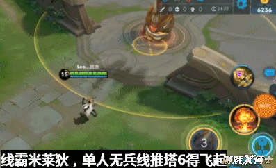 往常对线完一波之后可以相对放心地去各路游走支援或者回家回血;但是跟米莱狄对线时,只要你稍微不在场一小段时间,就会突然发现: WTF,一塔怎么被拔了??