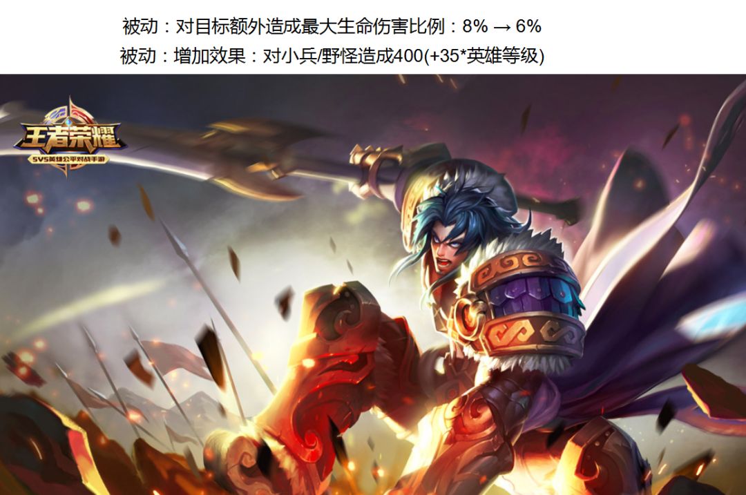 项羽属性回调,对英雄的伤害降低了,对野怪的伤害增高了,难道是为了让他更快发育?可是哪个坦克会去抢C位的野怪经济呢?看不懂这次项羽的调整,感觉像个乌龙一般。