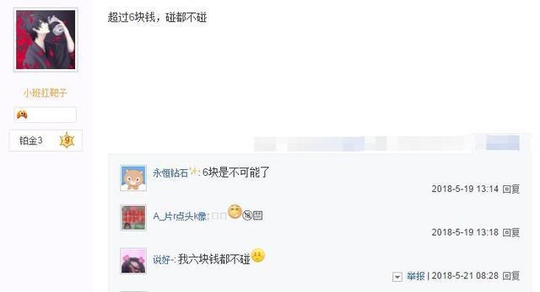 也有理智的玩家直言:超过6块钱的话,碰都不碰,直接就不想看到这款皮肤!玩家也做了回复,称如果是要6块钱的那也是不可能的,毕竟6块钱的皮肤刚上线不久,近段时间不可能再有的.