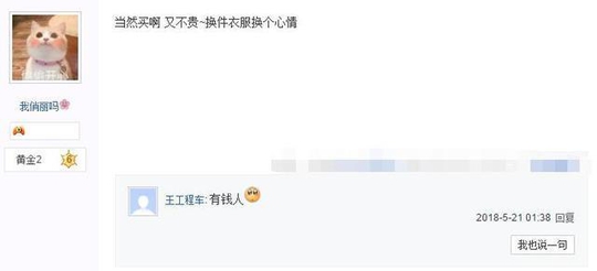 后面也有土豪直言当然买啊,又不贵,换件衣服换个心情,这句话绝了,看来土豪想买东西连理由都比平民牛逼的,后面马上就有小迷弟直呼有钱人.